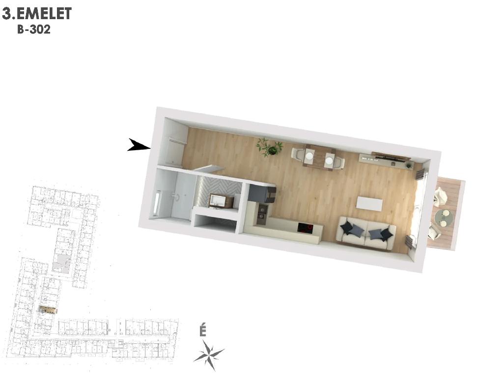 Hivatalos alapterület 31,29 m² Belmagasság 2,6 m Építés éve 2024 Állapot Új Tájolás DK Épület szintje 8 Emelet 3 Belső lakószintjeinek száma 1 Lift Hívó Egész szobák 1 Félszobák 0 Fürdőszobák 1 Komfortfokozat Luxus Fűtés Geotermikus Hőleadás Mennyezetfűtés Redőny előkészítés Igen Riasztó előkészítés Igen Portaszolgálat Igen Közös park / kert Igen Előszoba 4,21 m² Étkező 1,39 m² Nappali 16,30 m² Konyha 4,64 m² Fürdőszoba 3,99 m² Erkély 3,37 m²