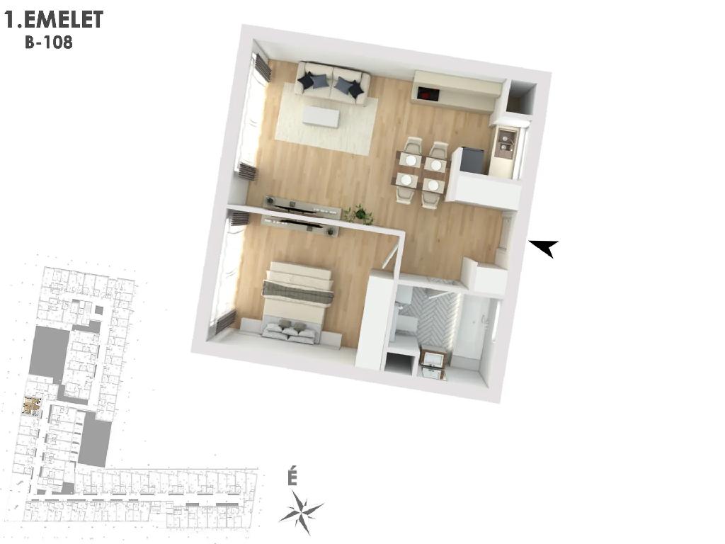 Hivatalos alapterület 49,1 m² Belmagasság 2,6 m Építés éve 2024 Állapot Új Tájolás ÉNY Épület szintje 8 Emelet 1 Belső lakószintjeinek száma 1 Lift Hívó Egész szobák 2 Félszobák 0 Fürdőszobák 1 Komfortfokozat Luxus Fűtés Geotermikus Hőleadás Mennyezetfűtés Redőny előkészítés Igen Riasztó előkészítés Igen Portaszolgálat Igen Közös park / kert Igen Előszoba 6,52 m² Étkező 1,79 m² Nappali 16,02 m² Hálószoba 14,04 m² Konyha 5,32 m² Fürdőszoba 4,56 m²